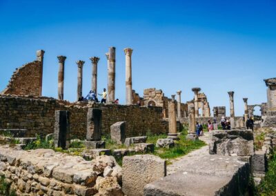 After exploring Meknes, we’ll drive to Volubilis, an extraordinary archaeological site and a UNESCO World Heritage site. This ancient Roman city is among the best-preserved in North Africa. Your guide will walk you through the ruins, explaining its history, mosaics, and monuments, offering a vivid glimpse into Morocco’s Roman past. Don’t forget your camera — the views here are breathtaking, with the backdrop of the surrounding olive groves and Atlas Mountains.