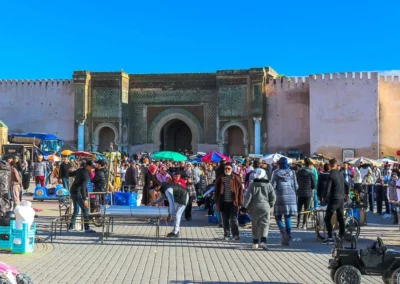 Your day begins with a morning pickup from your hotel or riad in Fes. You’ll set off toward Meknes, one of Morocco’s imperial cities, known for its rich history and magnificent architecture.